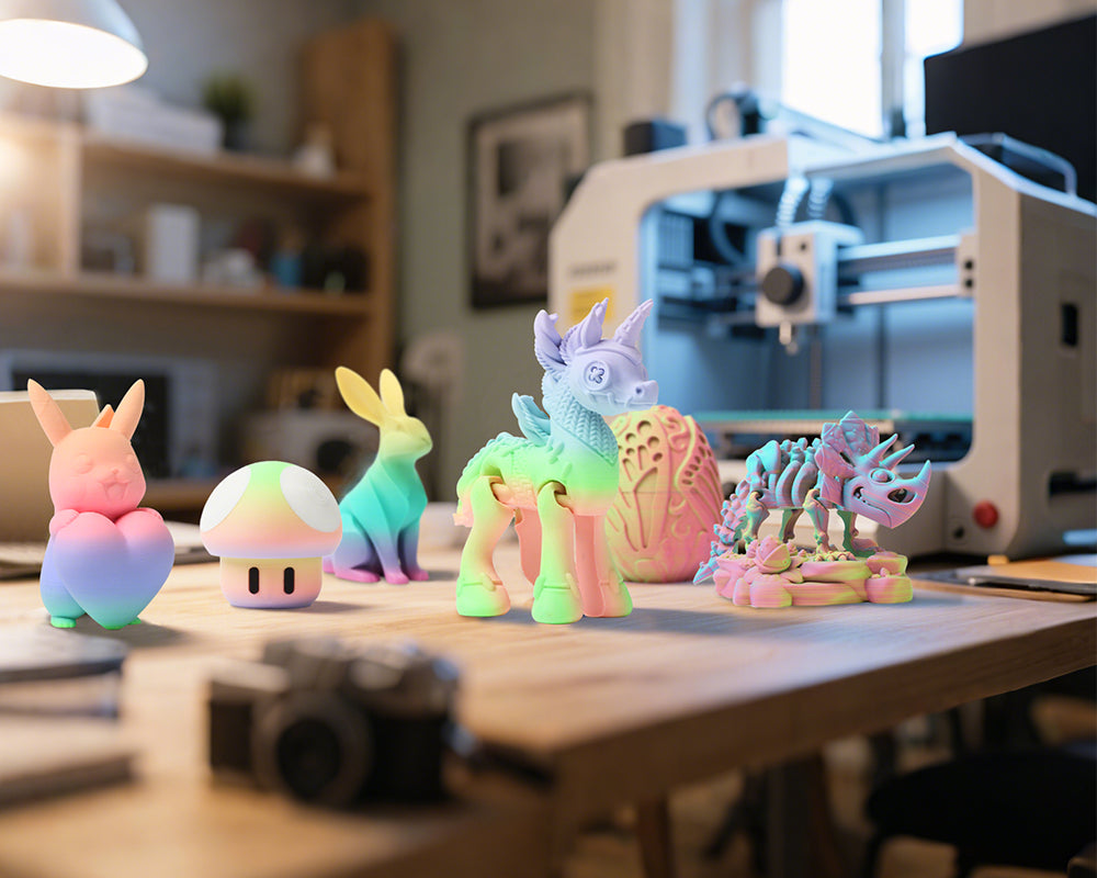 Vivid color transitions meet industrial-grade print quality. Engineered for high-speed printing with smooth extrusion and superior bed adhesion. Our anti-warp formula prevents bubbles and curling – guaranteed first-layer success. Premium-grade PLA pellets deliver professional performance without the professional price tag.