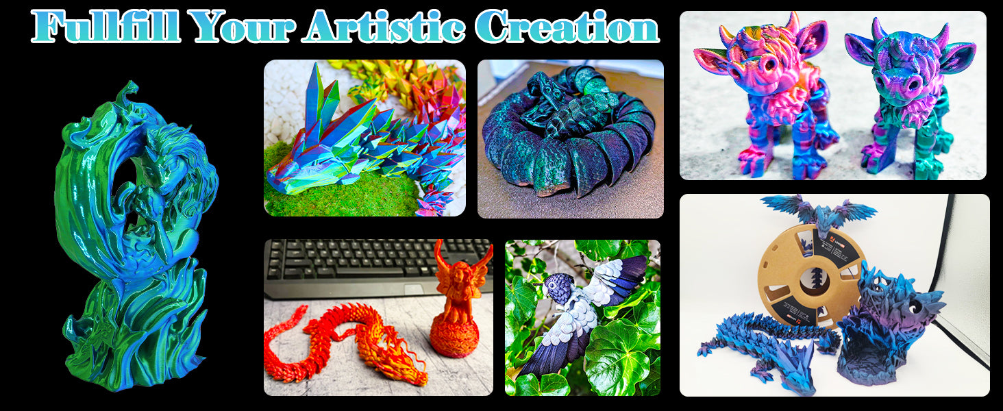 Dieses zweifarbige Seiden-PLA-Filament sticht in einem Markt mit einfarbigen Filamenten hervor. Im Vergleich zu herkömmlichem PLA verleiht diese Seidenvariante Ihren Drucken einen glänzenden Schimmer, der das Licht wunderschön reflektiert. Es reduziert Verstopfungen und Staus, ein häufiges Problem bei Standardfilamenten, und ermöglicht so einen reibungslosen Druckvorgang. Seine einzigartige Zweifarbigkeit verbessert die ästhetische Darstellung und macht es zu einer hervorragenden Wahl für künstlerische Kreationen.