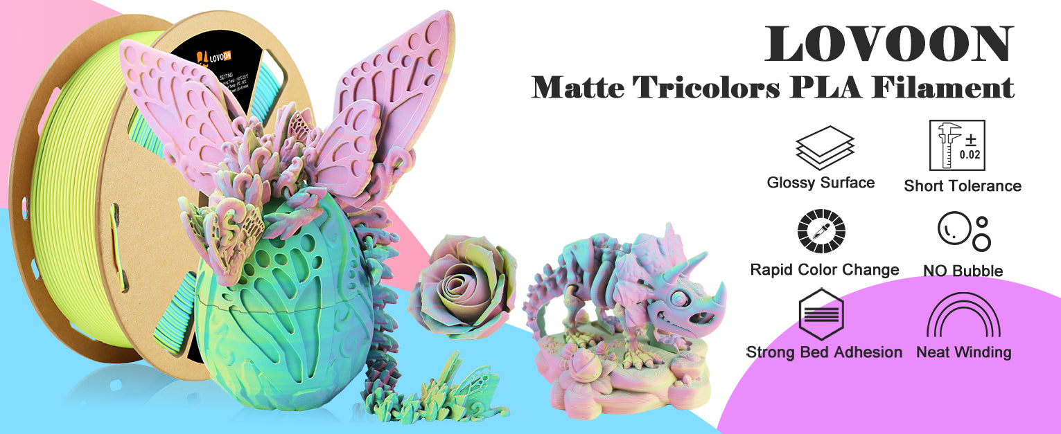 Matte Tricolor PLA Filament Pink-Yellow-Blue