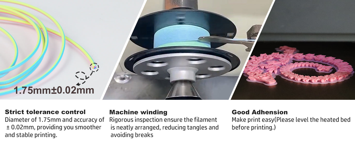 With its impressive printing temperature range, you can customize your settings to achieve the best results for your unique printing needs. The nuance of colors and smooth transitions offered by this filament unlocks a world of potential for your projects, allowing for striking details and vibrant representations. This Matte Tricolor PLA Filament is your go-to solution for producing exceptional, professional-quality prints that are sure to impress. Elevate your 3D printing game today!