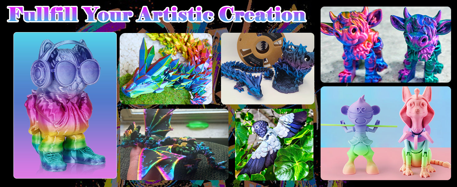 Experience superior print quality with the Dual Color Silk PLA Filament. The silk finish not only provides an elegant look but also helps reduce friction during the printing process, ensuring smooth, reliable operation across various print speeds. Optimized for both aesthetic versatility and mechanical performance, this filament grants you the ability to create intricate designs with ease, helping you to push the boundaries of your creativity. Choose this filament for your next project and discover the difference that high-quality materials can make. Whether you're creating prototypes, art pieces, or functional tools, the Dual Color Silk PLA Filament will elevate your work to the next level.