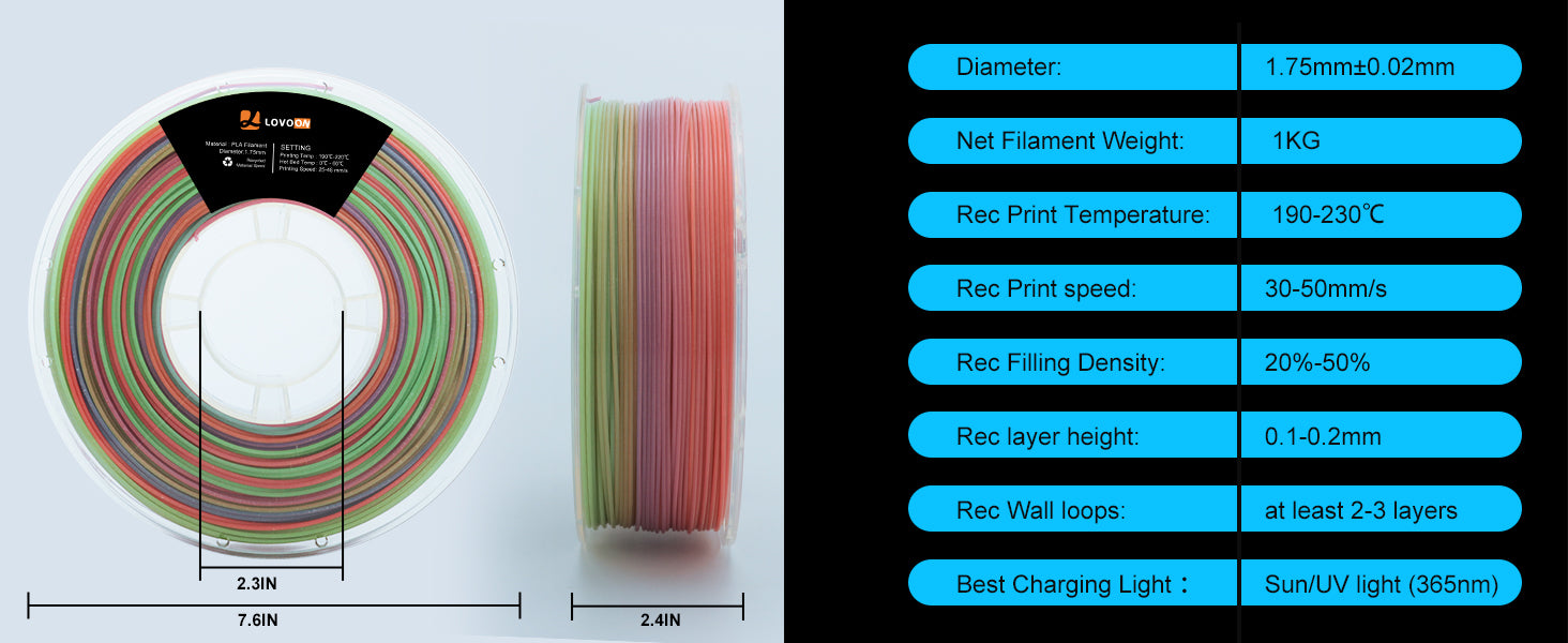Embrace a new level of creativity with our Glow in the Dark Rainbow PLA Filament, and watch as your designs transform into radiant masterpieces. Whether it's for fun projects or serious applications, this filament is a game-changer that lights up your imagination. Don’t just print—create glow-in-the-dark wonders that mesmerize and inspire, perfectly blending artistry with advanced 3D printing technology!