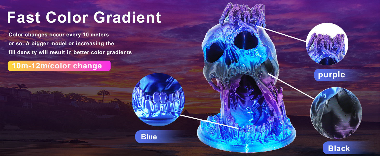 The PLA Filament Black-Blue-Purple Gradient is designed for optimal printing performance, offering a smooth extrusion and high compatibility with a variety of 3D printers. Its special PLA formulation not only enhances the visual quality but also maintains excellent layer adhesion and durability, which are critical for producing high-quality prints. With a printing temperature range of 190-220°C, this filament enables compatibility with most common 3D printers, making it accessible for both hobbyists and professionals alike.